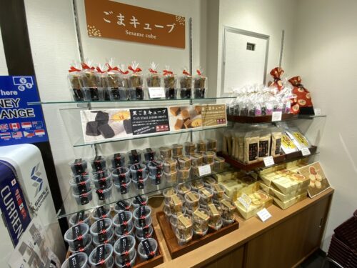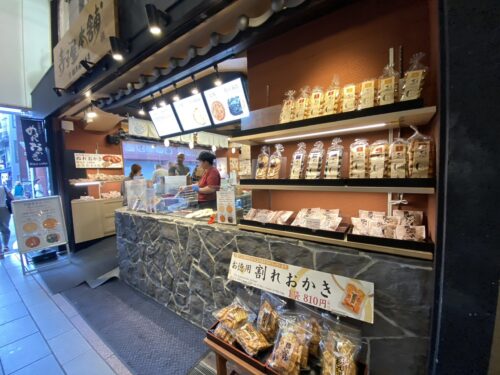おかき処寺子屋本舗、杵つき金ごま「ごま福堂」、そしてスヌーピー茶屋や抹茶専門店の「茶和々」、お箸専門店の「遊膳」「にしきギョーザ」などなど…。